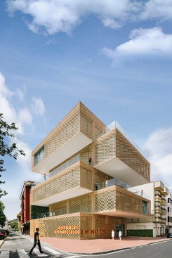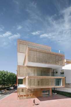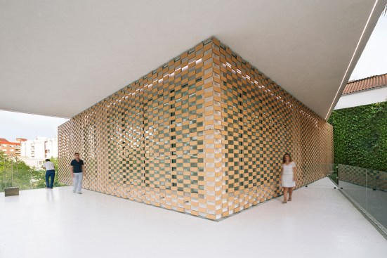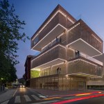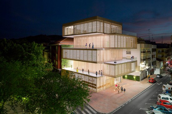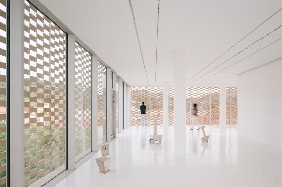 La Gota Cultural Center is a hybrid building that aims to create a new focus of urban centrality in Navalmoral (Cáceres), showcasing the identity of the town. In addition to a Tobacco Museum, the building hosts temporary exhibit spaces and a permanent exhibition for the painter, Sofia Feliu. The geometry of the building was inspired by the structure of the tobacco plant and principles of equality and diversity that are seen in their leaves: they are similar but different at the same time. The building contains a core for vertical connections with a structure similar to the way plants emerge. These plants are equal in size and morphology, but slightly vary in height, character and are slightly offset. Inside, the building has an atmosphere inspired by the tobacco drying-buildings, where patterns of light and shadow find their way through traditional brick walls. To achieve this aesthetic, a ceramic fabric was designed for the exterior surface of the building to allow light to enter into those spaces through a matrix of openings. This produces a dematerialized façade with refined geometries, allowing the filtration of sunlight through the walls and into the spaces.