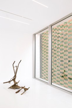 A green wall extends to the exterior of the Tobacco Museum. It is a didactic wall with tobacco plants and vegetation of the region that provides cooling for the building in the summer as well as significant energy savings. Between the Cultural Center and the adjacent building, a public square is created and flanked by the green wall on one side and ceramic mesh on the other.