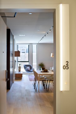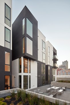 New Construction of a 28 Condominium Unit building in SOMA district of San Francisco. The design strategy challenges the housing landscape of attached residential buildings with zero lot lines unique to San Francisco’s urban fabric by reconstructing series of relationships among the 28 homes. From our background in interior architecture, we initiated our design process by examining the relationships between these 28 urban homes rather than a building design for a singular building.