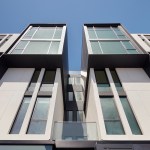 Measured at 90’W x 100’L, the width of this urban infill lot was not only the most challenging issue of the project but also the primary catalyst for the building’s form. Dwelling units in a multi-family building is often organized in a bedroom-living-bedroom configuration along the exterior front of the building, mainly to fulfill the light and ventilation requirements that these two programs are required to have. Once implemented, the lot’s 90’W dimension can only fit 2 units at most, making this building design inefficient and way under the performa of the development. We then took advantage of the voids the shifting process generates to bring light and ventilation within. This feature allows the footprint of the unit to compress when the bedrooms stagger around the lightwells, creating room to fit three equal size units across the width of the lot.