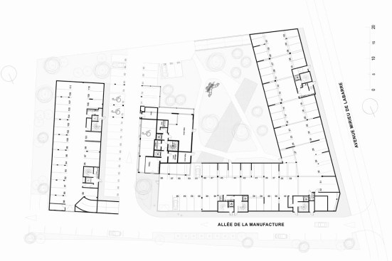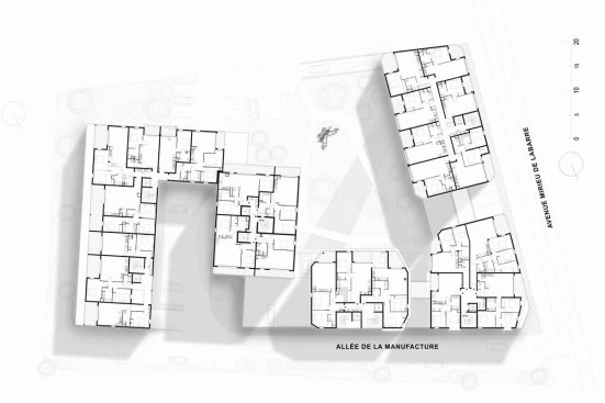The whole project offers both a social and programmatic blend. 154 housing units are divided into five blocks, housing offices and dwellings with different typologies (from T2 to T5) and different types of home ownership. Each accommodation features large terraces with generous views of the outside. Likewise, the project offices display large openings to the outside.