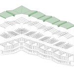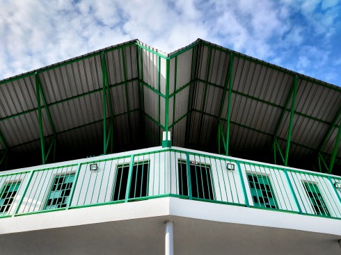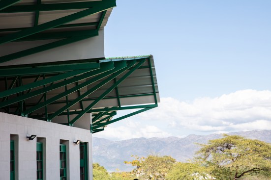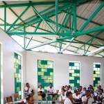 “The courtyard”, surrounded equally by the existing trees as with the floating corrugated metal roof of the school, produces a continuous ring which circumscribes the outdoor central space simultaneously providing privacy and safety for the students.