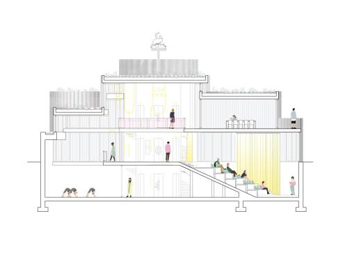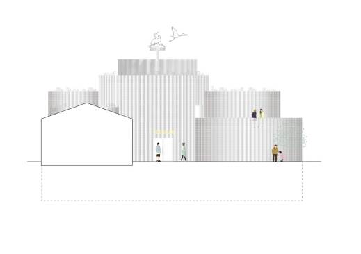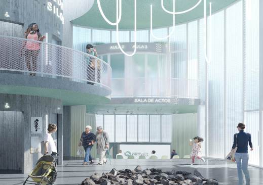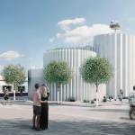 NOMO Studio has revealed their proposal for a new civic centre in the town of La Rinconada, Spain. The design reflects the historical traces of pre-existing silos and recognizes their unique volumes as part of the history of the town. The new building serves as a symbol of the future through a contemporary and renewed image of the heritage. The curved volumes, free of strict alignments and lacking clear front and back, invite the passer-by to enter the courtyard where the main entrance is located. Inside, the visitor finds an open and democratic space, offering great flexibility and strong visual connections. The different spaces can be understood as a single environment for large events, or as independent functions of free configuration. The building is expected to meet the highest standards of sustainability and passive architecture, eliminating the need for artificial air conditioning. For this purpose, a double ventilated facade made of polycarbonate and perforated sheet has been designed, combining high thermal insulation and solar protection. A system of continuous natural ventilation, thanks to the double heights, ensures thermal comfort throughout the year and the great luminosity of the facade reduces the electricity consumption.