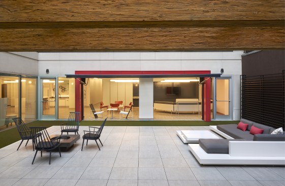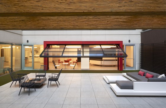 Wingate Hughes was commissioned by LaSalle Investment Management to re-design the third floor at 1620 L Street NW to make the space a differentiator for the entire Washington, D.C. building. Tasked with game changing, Wingate Hughes took advantage of the underutilized square footage by retrofitting the third story with four office suites, increasing renting potential, and converted the perimeter rock-filled roof into a deck with shareable amenities. Not stopping there, the firm replaced the wall bordering the roof with a three-ton glass “garage” and transformed the common room and roof into one continuous area.