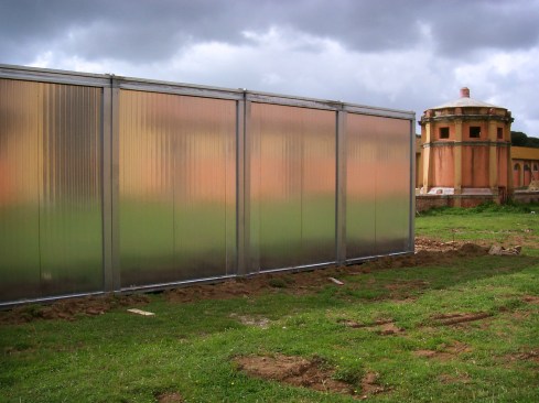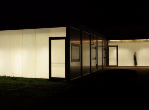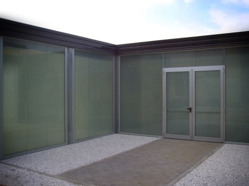 In 2006 the Studio Lauria was in charge by the photographer Oliviero Toscani to develop the project of the laboratories for the Creativity workshop “La Sterpaia” . Daniele Lauria designed a prefabricated structure to be positioned in the green courtyard of the royal stables of San Rossore national park in Tuscany. The facades of this 285 sqm building were covered with composite panels laminated with glass and specially made by Bencore, this special coating ensured inside a correct brightness and, in the night, make the building a kind of opalescent lantern.