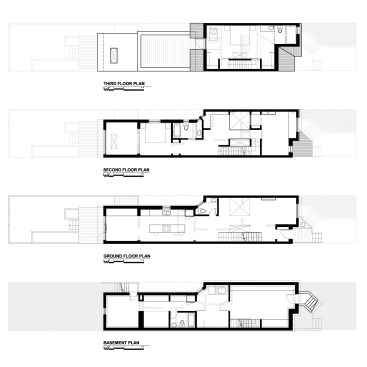 The 60’ x 15’ house gives the architect an opportunity to emphasize on linearity of spaces. By eliminating the unnecessary elements in the floor plans, the house is transformed into continuous open-concept spaces in which natural light makes a soft voyage and exaggerates the length of the rooms.