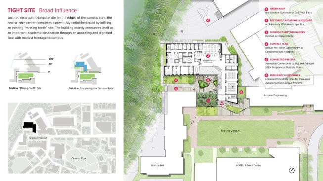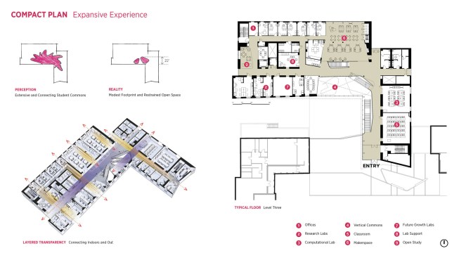 – More exciting science and campus space in a very compact building on a very constrained site.