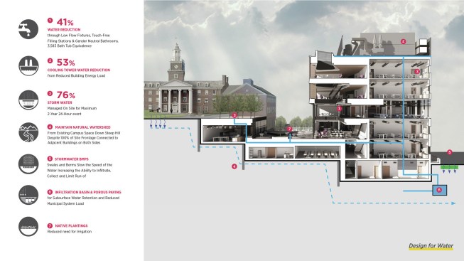 – More architectural impact with remarkably limited frontage on campus.