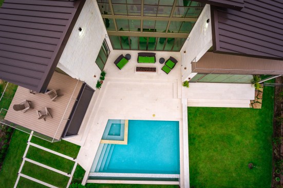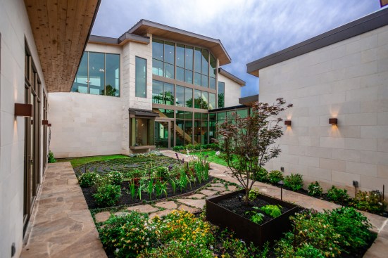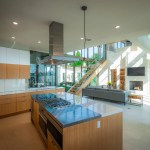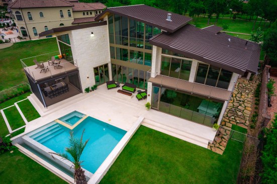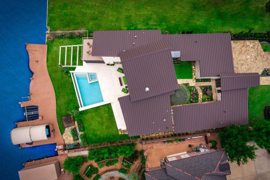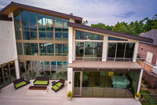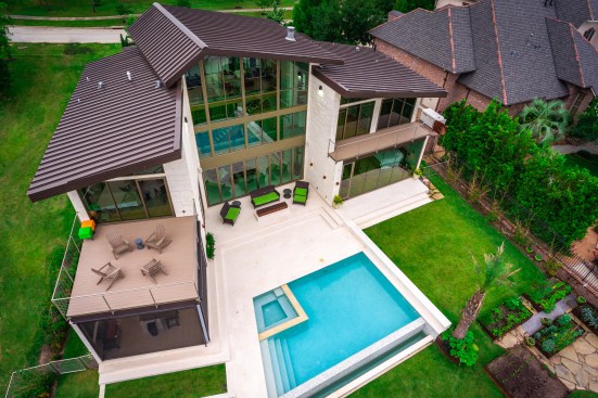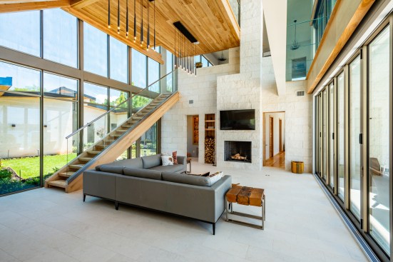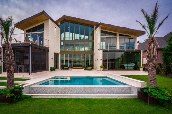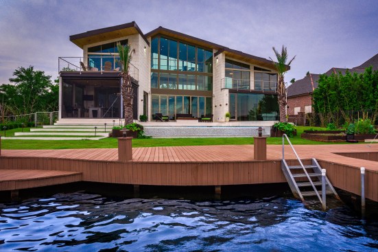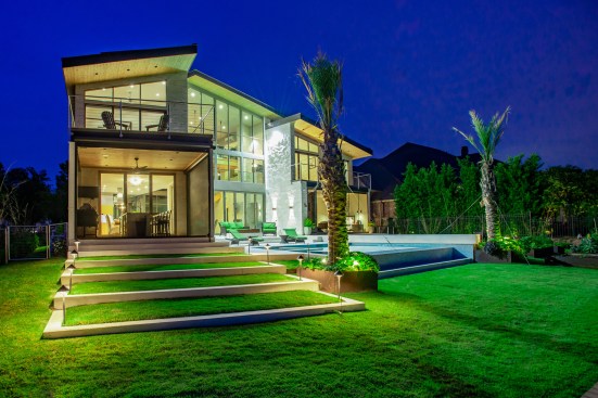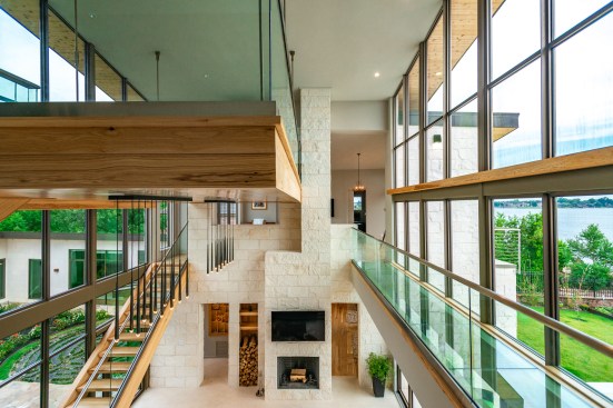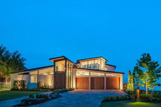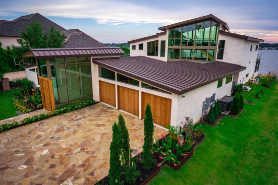 To face a steel and glass wall towards the west exposure in front of a lake in southern Texas is less than ideal, environmentally speaking. An extensive amount of effort and design time was spent detailing internally insulated and exteriorly cladding the steel frame system to reduce conductive heating while high performance glazing, computer controlled shading devices and orientation were utilized to minimize the solar gain. But where there are challenges, there are also opportunities. The first floor glazing folds and slides away to bring the entire lakefront and associated exterior pool and exterior kitchen into one continuous space.