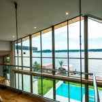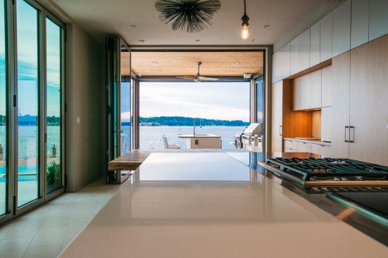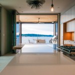The particular challenge of this waterfront property, is “what is front?” Sides are obvious, but the property is approached, publicly from both the water and the street. In this particular case the street entrance was bound by design codes, the waterfront was not. An opportunity is realized between, architect, owner and contractor in redefining entry. The street entry becomes gate, a thickened threshold that reveals an inner sanctum, a courtyard before the actual entry. What had been a restrictive rule, has created a multitude of opportunities for expression, secondary space, and environmentally conscious and reactive space – through which a single glass, secondary threshold reveals the vista beyond.