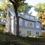 The steep hillside, with slopes exceeding 40%, provided the opportunity to create an additional level of living space concealed from view on all but the lake-facing side. When approached from above, the home appears to be a 1-1/2 story cottage, similar in scale to its older neighbors.