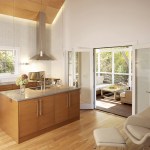 The exterior is finished in standing-seam roofing, board-and-batten siding and local stone. Birch was used throughout the interior, including ceiling panels which conceal cove lighting. The house combines these common vernacular materials in a simple geometrical composition that appeals to both traditional and contemporary sensibilities.