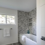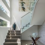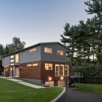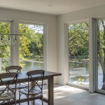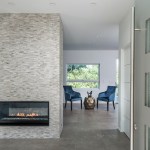 The front of this modern residence is uniquely positioned on a busy thoroughfare yet the back is nestled in a serene setting with direct lake access. The design intent included an open living concept, three bedrooms, four baths and a home office encompassing modern materials and fixtures. The interior spaces took shape by aligning and directing the living areas with sweeping views of the surrounding environment throughout both floors of the residence. A double sided fireplace positioned in the center of the home serves as a warm welcome from the entry and a cozy living room backdrop. The jewel of the home is the northeast corner where a sequence of floor to ceiling windows allow for panoramic lake vistas and unobstructed sight lines to mature trees and lush vegetation inspiring peace and tranquility.