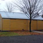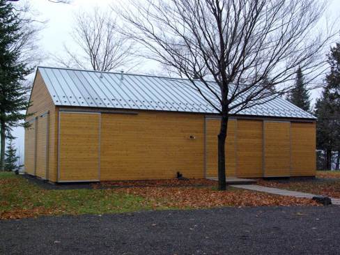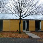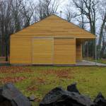 Due to the harsh winter climate, one of those challenges was to design a structure that maximized the glazing area without totally compromising the thermal envelope of the building. That was accomplished by conceiving of the glazed areas as ten foot tall floor-to-ceiling openings with adjacent wall surfaces of equal lengths that overlap with insulated shutter panels. The shutter panels can be closed in the winter months to limit the amount of exposure and to increase the thermal resistance of the building envelope. They also provide added security for the owners who can lock the shutters in place while they are away. This approach led to an approximate 1:1 ratio of glazing area to solid wall area.