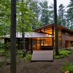 Nestled into a Hemlock-Beech forest, the Lakeside Camp is an architectural meditation on the reciprocity between the wooded lakeside site and its vessel-like architecture. Our integrated approach to developing a place-based and site-specific design, celebrates the landscape as an arena for communion with nature and family. The design transforms the existing property from summer retreat into family compound and the camp’s quiet repose on the periphery discreetly reorders the site. This contemporary addition within the family of buildings is ‘next generation’: blending the form, scale and materials of the existing structures with an open floor plan, expansive glazing, and streamlined interiors. The result bridges the refined and rustic, the quiet and expressive, the familiar and progressive. The efficient layout allows for 10 beds with a minimal footprint. High quality construction aims to minimize life cycle costs while the durability will allow the building to last for generations to come.