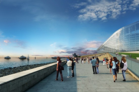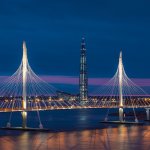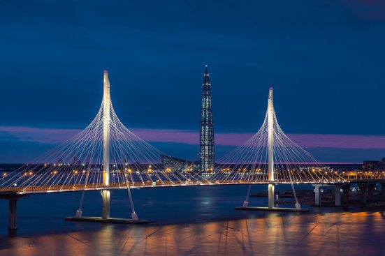 The Lakhta Center occupies a unique position on St Petersburg’s landscape, both for its striking ‘barbed’ design and sleek curved façade. Set 12 km from the city centre on the coast of the Gulf of Finland, the Headquarters’ distance from the historic city centre allows it to act as an architectural centrepiece to the Central Business District. The Tower’s organic ‘spire’ shape symbolises the power of water, while the special glass façade allows the building to change colour depending on the position of the sun, giving the impression of a ‘living object’.