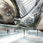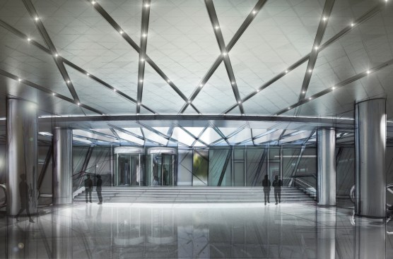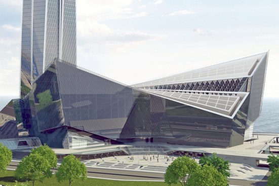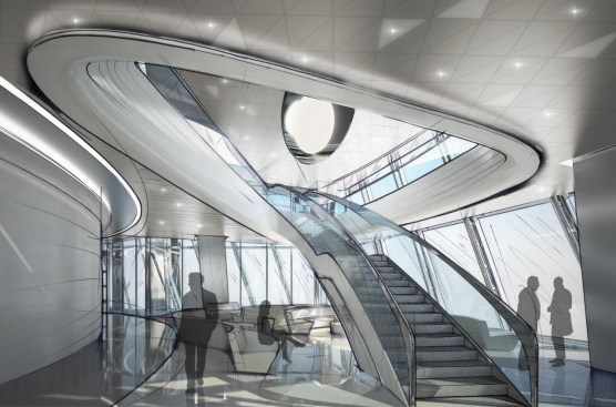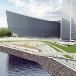 The tower design is the natural evolution of the RMJM concept previously proposed for the Okhta site, a design inspired entirely by the city of St Petersburg with its baroque architecture and water filled canals, with the changing form of water to ice, from soft organic free-form to angular crystalline geometry.