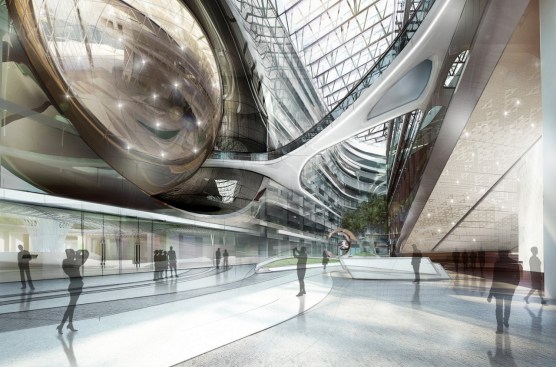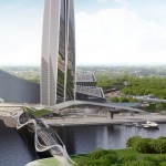 The building’s design incorporates several innovative efficiency features, including an ‘intelligent’ glass façade that provides both natural ventilation and thermal insulation and specially designed micro-climate air conditioning. The design includes the use of the largest volume of glass ever used on a high-rise building. The high-rise tower incorporates 86 aboveground and 3 underground floors, making it one of the tallest in Russia upon completion. The foundation is so large the foundation will require the longest continuous pouring of concrete ever attempted, or around 20,000 cubic metres.