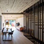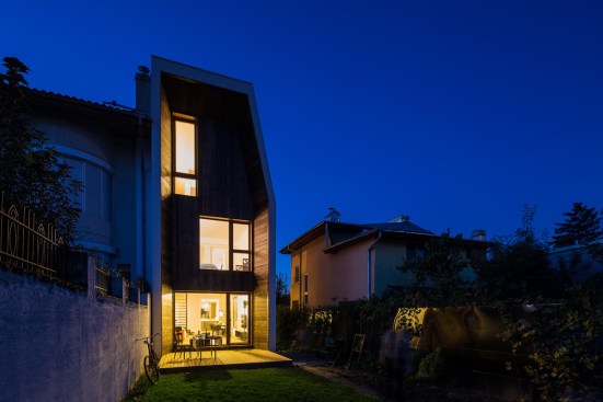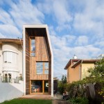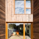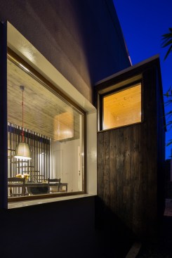 material used for the backyard facade is burnt wood. The image created is harmoniously