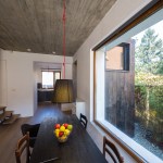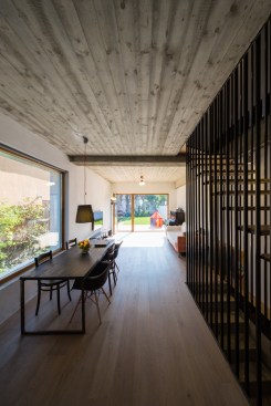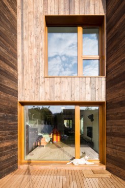 pinewood, white painted steel frames for the openings and triple glazed windows