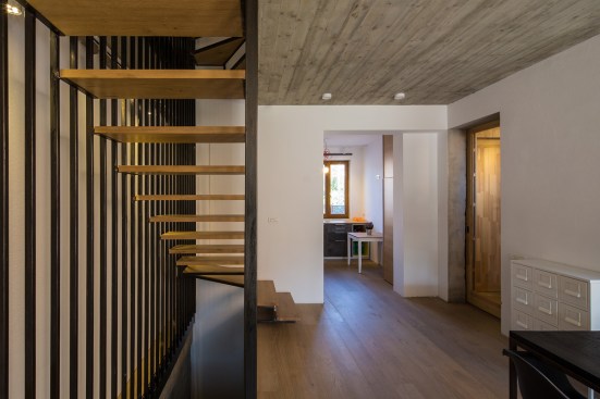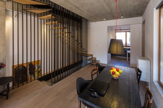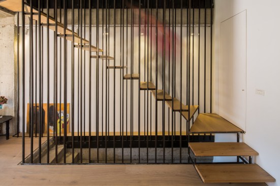bathrooms .The staircase’s structure was built out of steel and kept with a
