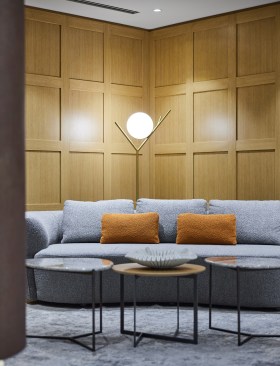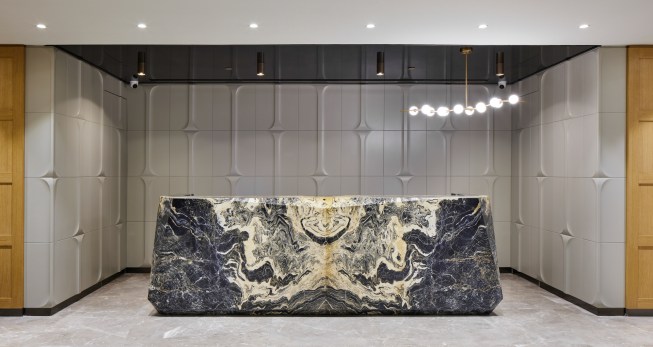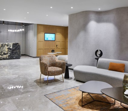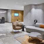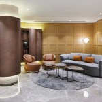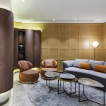 Inspired by Eftalya, which sings at night in venues on the shores of the Bosphorus and echoes across the entire Bosphorus, Designist has abstracted the wave movements of musical tones into the hotel interiors. While the strong effect of these waveforms is felt on the ceiling of the lobby, special cut natural stones are used on the floor. All the walls are formed with cornerless circular forms. The harsh effect of the wall, where the elevator and stairwell are located, is broken by covering it with a dark mirror and reflecting it. On a part of the mirror-covered wall, natural stone pavements in amorphous form, inspired by the silhouette of the Bosphorus, are included. A calm and peaceful atmosphere has been created by using neutral color tones in Lamartine Hotel, where organic forms are dominant in general.