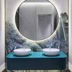 Designist used light colour tones, open closet, and bathroom systems to make hotel rooms look more open and spacious. There are works of an art from female silhouettes that revive the memory of Eftalya, the Mermaid, plaques and photographs of Eftalya on the walls. Patterns that refer to sound waves are used on the wallpapers. By placing large-sized ceramics in wet areas, joint images are reduced and opaque glass material that can transmit light is used as a separator.