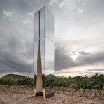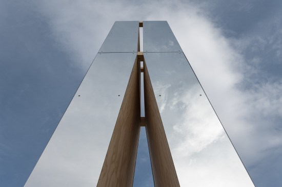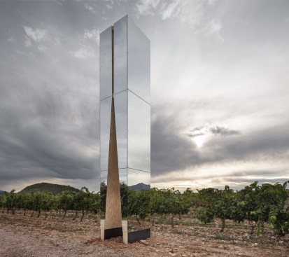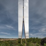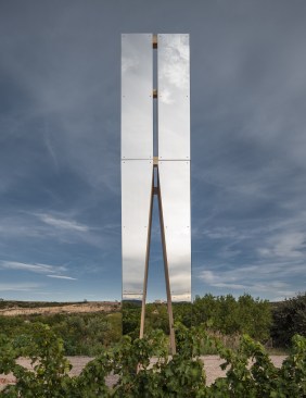 4 sides represent each of the stations, a vertical element that rises 7.50 m, an ephemeral landmark, stands out within the site, which bathes the Ebro river. Its outer faces are made up of a mirror-skin, a similarity to elegant glass and creates a reflection of your changing environment, throughout the year.