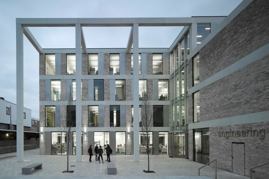 However you define classicism, I think the engineering building is quite a carefully proportioned building. Its principal reference is the postwar architecture of not just that university but similar universities that were state-funded, and, in fact, a bit like our national health service―the great development of social endeavor after the war. It’s reflecting the kind of spare, modernist, and honest aesthetic that was determined with those social movements. It’s not a Brutalist aesthetic. It’s not the Paul Rudolph or Denys Lasdun architecture of the postwar era, it’s an architecture that was slightly more modest and understated. There is a kind of classical language there, an understated competence and integrity in the architecture. There are no frills or funny bits. It’s just a modest, robust structure; hopefully fit for its purpose, but with enough care in its materiality and its realization to make it a building of quality rather than just a functional box.