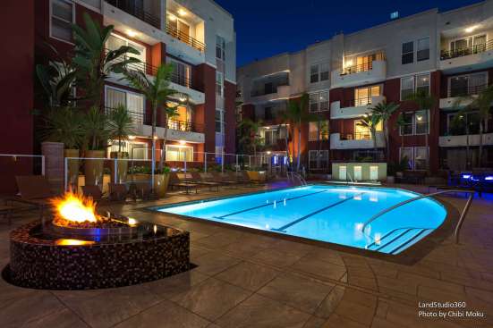 The Westerly on Lincoln, a 583-unit apartment community, needed design improvement to the curbside appeal as well as functional and aesthetic enhancements to the pool area and on-podium courtyards. The end result is a landscape that is complementary to the new architectural façade, contemporary aesthetics such as LED lit acrylic panels, a large water wall outside the leasing center, and courtyards activated with dining and lounging amenities.