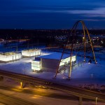The architectonic concept derives its inspiration from electricity and its visual manifestation: light.