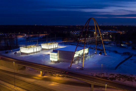 The power station is sited at a highly visible location at the corner of Ring Road III and the Porvoonväylä highway.