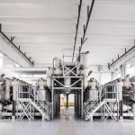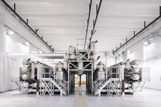 A switchgear room and its cable space underneath occupy the largest spaces in the 3-storey concrete-framed GIS building. Other technical facilities are distributed over three floors on the building’s southern side.