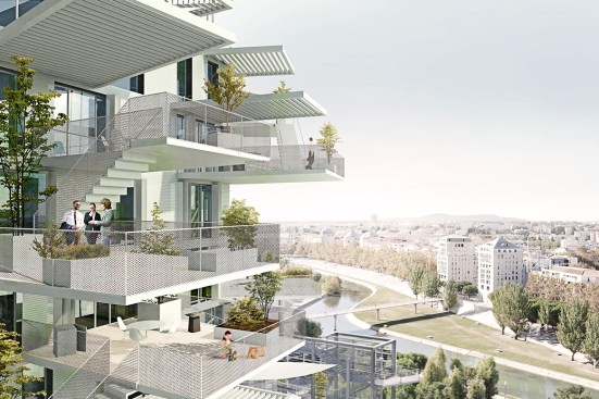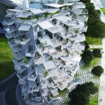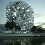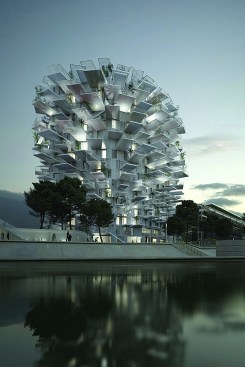 An unconventional yet dialectical process will passively cool units with solar fireplaces. Arbre Blanc is the tallest "Folie" in Montpellier's architectural arsenal and is looking become the city's focal point, a landmark that serves as a lighthouse or guiding star at night amid the regional urban skyline.