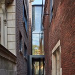 The architectural solution conserves all the non-deteriorated cultural assets, maintaining the authentic integrity of Locust Walk, yet allowing for a very different set of requirements and conditions at the back. Using a clear strategy of repair and proper cleaning, the historic preservation of the masonry and limestone façades is impeccable. Featuring a muscular black steel and glass system, the north façade admits natural light into this deep, narrow building. The design represents literal and figurative transparency—views out and views into the building from campus showing student activity.