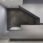 New construction also features exterior party walls built in pewter-colored manganese iron-spot brick with matching mortar, complimenting the neighboring buildings—each a different red brick—without imitation. The bricks are laid in an elegant vertical soldier course with a staggered bond. On the second and third floors, the brick gives way to a 14"-deep series of tapered, dark grey steel mullions infilled with tall glass panels. Detailed to slide beyond the ceiling plan and roof, the steel façade’s appearance is abstract and bold while blending effortlessly with its surroundings.
