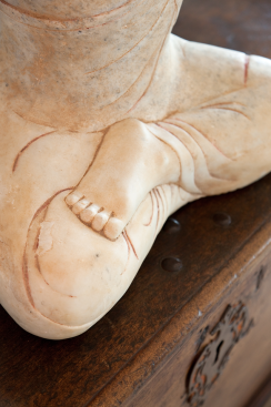 The blue rug is sourced from a local rug store in Santa Fe – Arrediamo. The table between the chairs was purchased by VR Interiors in Granada, Spain. On the fireplace mantle is an Ancient Chinese Jade Bi.