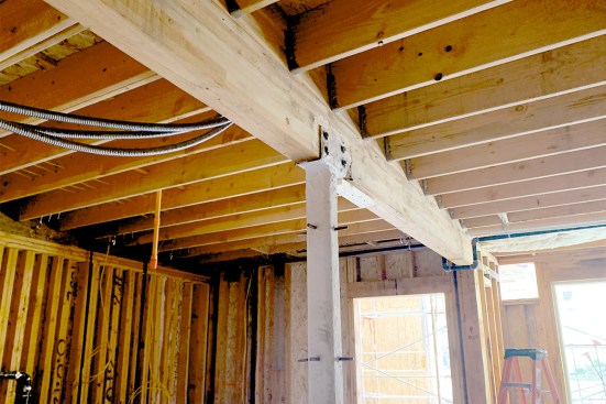 “We tried to make it as affordable as possible,” said Hooman Tavallali, Vice President of Production at CORE Structure. “We were able to reduce the number of hold-downs by 30–40%. We also used straps instead of the typical tie-down rods to transfer tension from floor to floor, which made labor and construction easier.”