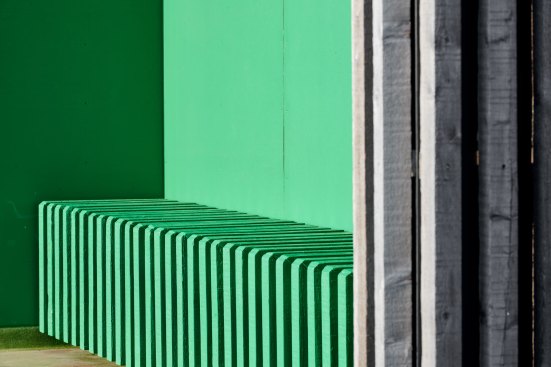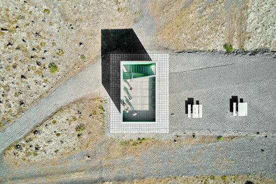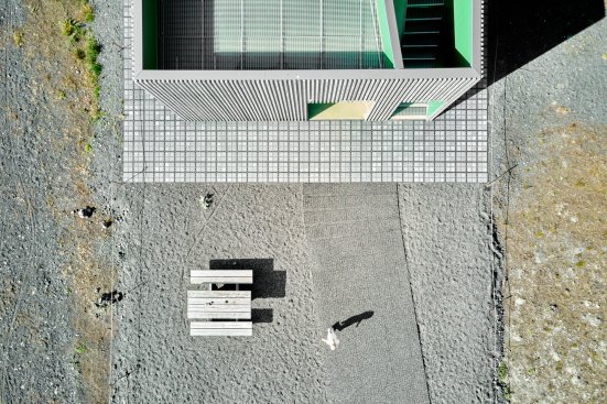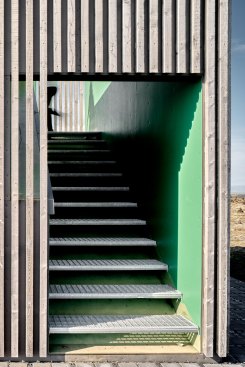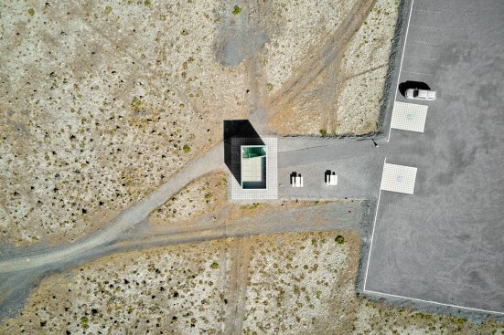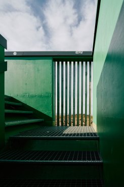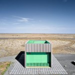 This metal and wood structure provides support to the many (bike) travellers around, through a combination of toilets and bike storage. Visitors and users alike are provided with 360º views by accessing the upper floor of the structure.