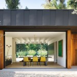 Outside, the 40-foot-long pool and ample space create a series of outdoor rooms for outdoor entertaining. A minimalist palette of charcoal colored panels and Western Red Cedar serves as a neutral canvas, complementing the home’s landscape featuring California native species.
