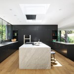 The entire site here is treated as we are accustomed to treating interiors. The surrounding trees and hills are taken to be the building envelope and the exterior walls of the house are reconceived as a series of partition walls. Instead of only externalizing interior spaces, exterior spaces are also internalized. The grounds are interlocked with the interior space and the entire ensemble is activated by the purposeful arrangement of deeply layered sight lines, vignettes and circulation connections. Large windows, skylights, and pocketing doors infuse the home with natural light, reflecting off wooden floors and marble countertops.