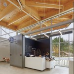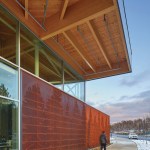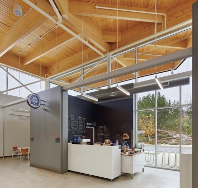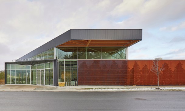 The Student Centre functions as a vital juncture along the campus’ spine, linking the university’s east and west campuses and giving students a centralised gathering place. Its brow-like shape is inspired by Greater Sudbury’s changing landscape, its industrial heritage and its new spirit as a “brutally beautiful city.” Built on two floors on a topographically-challenging site, the student centre appears to emerge from the bedrock, reflecting the lakes and forests that frame its views. This unique and memorable presence provides the SGA with a strong new identity rooted in nature.