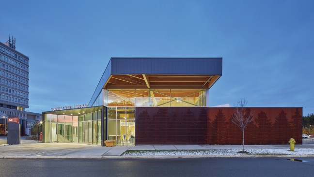 In alignment with the university’s 2013 Campus Masterplan to modernise and build new student-focused spaces and facilities, the new Student Centre is the university’s first standalone building completed in its 57-year history. Dedicated to, funded by and operated by students, the centre provides a mix of social, learning and support spaces that enhance student life and gives the Student General Association (SGA) greater visibility. Gow Hastings Architects and Yallowega Bélanger Salach Architecture were asked to create a space that responded to student needs while also complementing the campus’ unique topography and Northern identity. Following a series of student consultations, the design team recognized that students needed a comfortable place to both be productive and to socialize. As a result, the new building offers spaces for community and connection while cultivating a relationship with the majestic northern landscape.