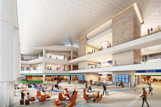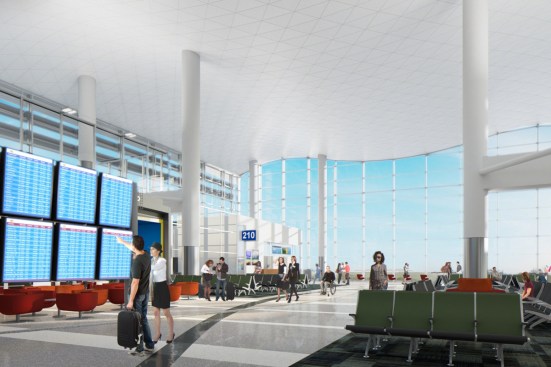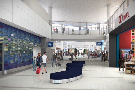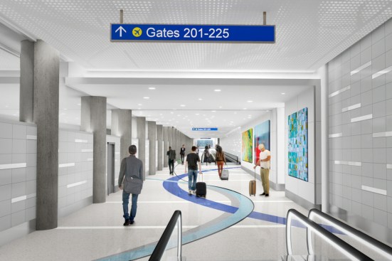 To enhance the passenger experience and drawing on the urban fabric of Los Angeles, multiple gates are grouped together to create “urban neighborhoods.” Gates are surrounded by retail kiosks, cafes and passenger service amenities such as powered work counters, play areas and conversation pods. This approach is designed to cater to every passenger regardless of age, ability, group size or reason for travel and provides a variety of comfortable seating options.