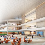 Passengers connect to the Midfield Satellite Concourse at the Apron Level bus gates. From here, passengers ascend the grand vertical circulation core and arrive in the multi-level atrium space of the central dining terrace. Upon arrival, the passenger can clearly see the TBIT terminal in the distance through a three-story high glass façade, aiding the passenger’s sense of orientation. This arrival space is an active ecosystem of quick-serve, luxury sit down, family and bar dining options. The centrally located Duty Free shop invites passengers to sample its offerings. Airline premium fliers access airline clubs on the upper levels via six elevators.