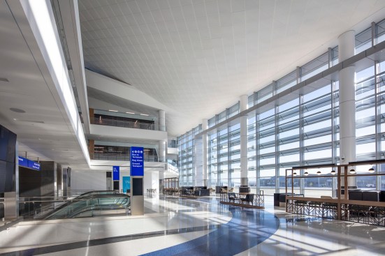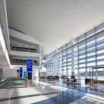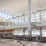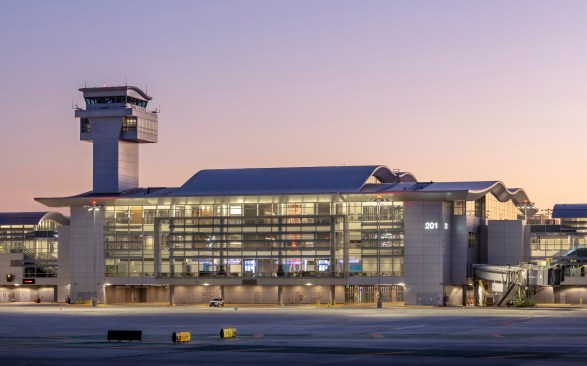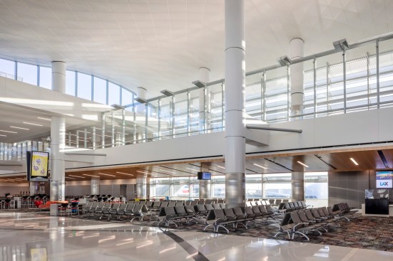 The new 15-gate West Gates Terminal serves as an expansion of the Tom Bradley West International Terminal. It is connected to TBIT by a 1,000-ft-long underground pedestrian tunnel with moving walkways, in addition to a separate utilities tunnel for baggage and services. The façade system includes a mix of metal panel and glazing systems with integrated structural support system that is cost-effective and performance driven. The concourse features a curvilinear metal roof structure with clerestory glazing to maximize daylighting. A three-story insulated glass façade blends seamlessly into the curved roof structure with a unique interface to the curved ceiling on the interior. West Gates features three feature picture windows, which provide expansive views and daylight. The windows are up to 50-feet high and incorporate two moment frames at the end of each opening to provide lateral stability for seismic movements.