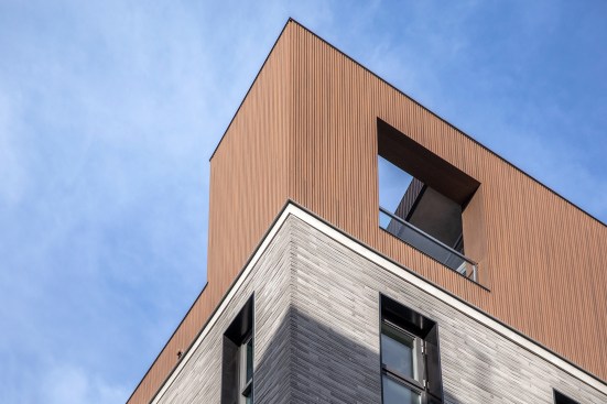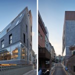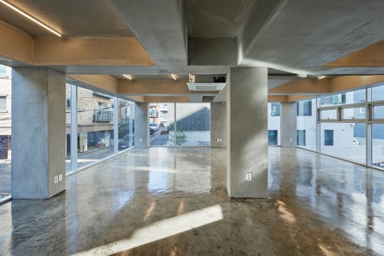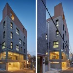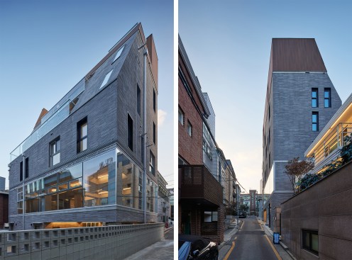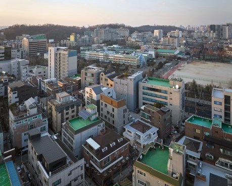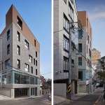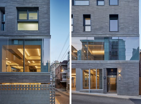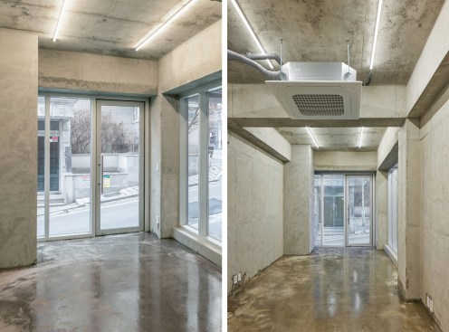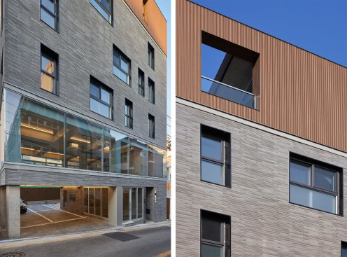 The first floor is a commercial facility and consists of a program that can be used with local residents. The second floor is an office, and the third, fourth, and fifth floors are planned as residential areas. When viewed from the outside, the slab is exposed to the outside to separate programs and materials. It provides a sense of scale that fits the pedestrian who walks by dividing the large mass into small pieces. Conversely, in order to make it feel like a solid mass when viewed from a distance, a lot of windows are placed in the front of the road, and windows are minimized on the side.