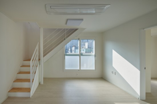 Layered House is located in a sloping alleyway in Seocho-dong. This alley is filled with villas on the fourth and fifth floors, and you walk away looking at the automatic door and parking lots of the villa’s front entrance. I hoped to pervade naturally in this alleyway where similar but different types of buildings are concentrated.
