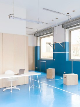 In late 2020, OAR / OFFICE ABRAMI ROJAS, a recently established architectural firm, received an invitation from an association to undertake a unique project: the creation of Paris’s first space for adapted physical education. The challenge was presented by VIACTI, a non-profit organization committed to promoting accessible physical activity. Faced with budget constraints, OAR embraced the opportunity to showcase creativity, resulting in a project with both significant social and visual impact. Externally, the playground captures attention through a thoughtful use of materials. The epoxy blue resin floor, mirroring the colours of the association, establishes a unified visual identity. Warmth is infused into the space through birch plywood cladding on walls and custom furnishings, achieving a balance between aesthetics and functionality.Guided by the philosophy of embracing constraints, our design approach led to an interior that surpasses limitations, providing a distinctive yet practical environment. Beyond serving as a sport facility, this project is a meticulously crafted space that caters to the diverse needs of its users. Our dedication to sustainability is evident in the selection of eco-friendly materials, ensuring every design element contributes to user well-being while minimizing environmental impact.LE TERRAIN exemplifies the effective use of resources and thoughtful design. Positioned as a subtle yet impactful community contribution, it advocates for accessibility to physical activity while adhering to the project’s constraints.