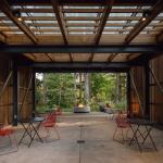 Leach Botanical Garden’s new arbor and fireside terrace introduce dedicated space for gathering and special events, integrated within the lush landscape of the surrounding gardens. Inspired by lath houses, a type of greenhouse, the arbor features a precise composition of wooden screens attached to a steel and glulam structure instead of traditional solid walls, allowing plants to grow unimpeded up to and around the structure. The unconditioned, semi-enclosed space provides protection from the sun and moderates strong wind while inviting a dynamic play of light and shadow. Made of sustainable and durable Kebony, the arbor’s wooden screens will continue to weather as they age, maturing alongside the new gardens. The arbor interior spills onto an exterior stone terrace with integrated gas fireplace, fostering year-round enjoyment.